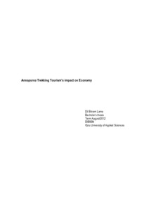 (Oulun seudun ammattikorkeakoulu, 2013)The purpose of this thesis was to find out the economic impact of trekking tourism in Annapurna region. This research has reviewed the overall physical features and attraction of Annapurna region. The other main objective ...